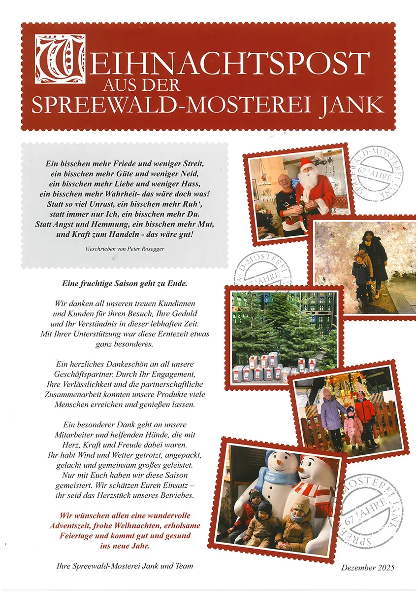 Letzte Lohnmostausgabe am Montag den 22.12.2025